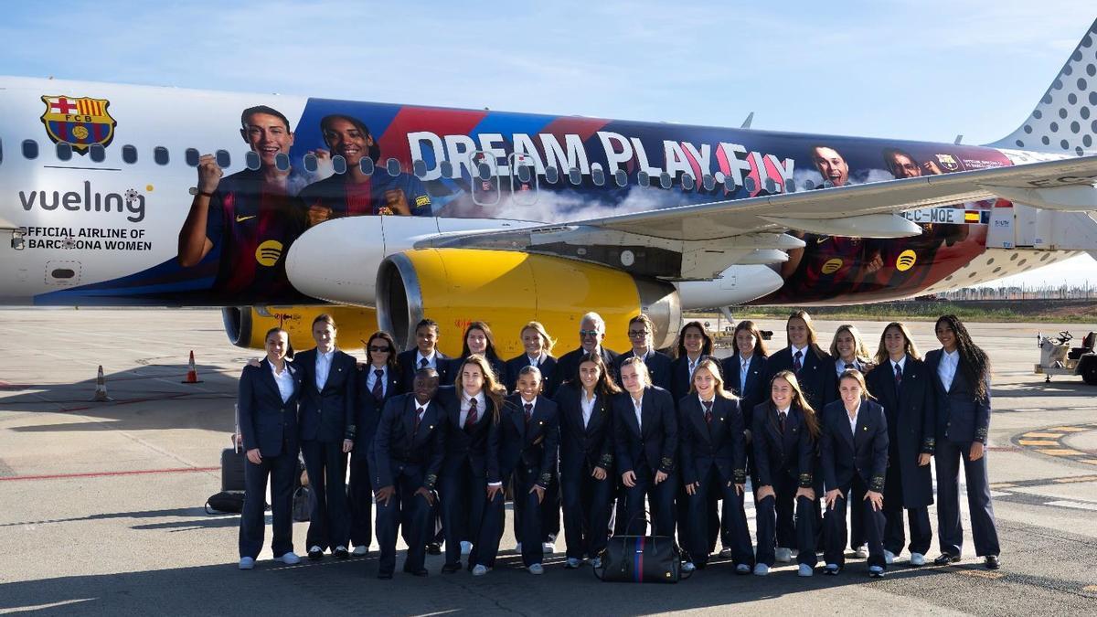 La aeronave, un Airbus A320 de 180 plazas, incorpora en el fuselaje el lema “Dream, Play, Fly” y las imágenes de ocho futbolistas azulgranas: Aitana Bonmatí, Alexia Putellas, Claudia Pina, Caroline Graham-Hansen, Patri Guijarro, Salma Paralluelo, Ewa Pajor y Esmee Brugts. Una reedición del avión que ya tuvieron las futbolistas el año pasado y que llevo a miles de pasajeros a sus destinos.