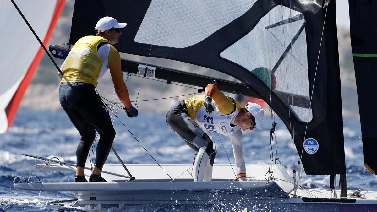 A España todavía le quedaba por celebrar el oro en 49er del cántabro Diego Botín y el catalán de ascendencia suiza Florian Trittel, quienes antes de la carrera a cuatro por las medallas tenían asegurada la presea de plata tras proclamarse ganadores de la fase regular con 71 puntos.