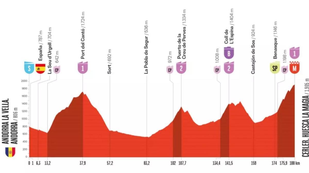 La etapa entre Andorra La Vella y Cerler, con 188 kilómetros de recorrido, es la segunda de esta Vuelta del nonagésimo aniversario con más desnivel acumulado, tan solo superada por la penúltima jornada entre Robledo de Chavela y la Bola del Mundo. Son las dos únicas que superan este 2025 los 4.000 metros de desnivel.