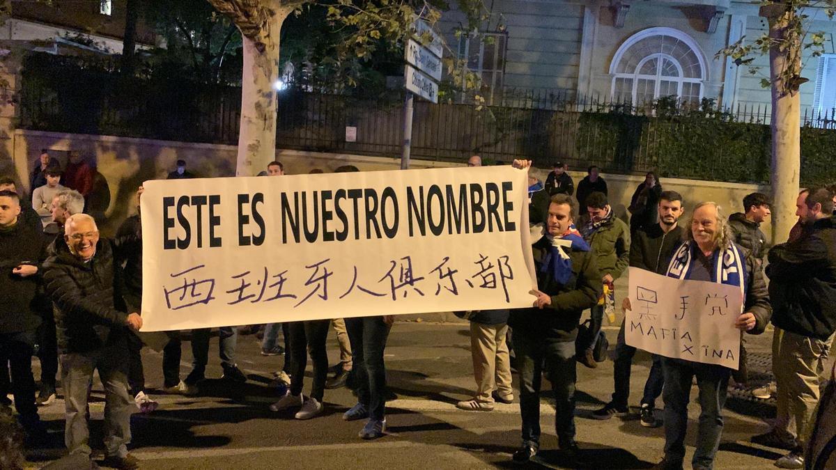 Marejada en el Espanyol: más de 200 pericos protestan contra Chen junto al consulado chino de Barcelona